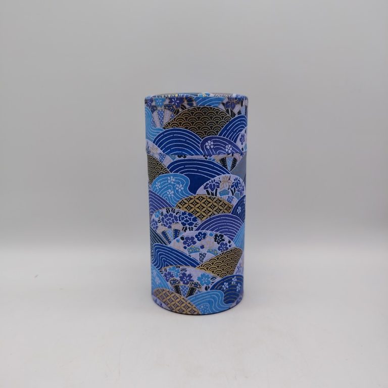 Porta tè in carta washi L – azzurro con sakura e fiori