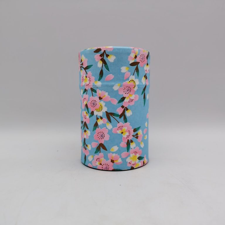 Porta tè in carta washi L – azzurro con sakura e fiori