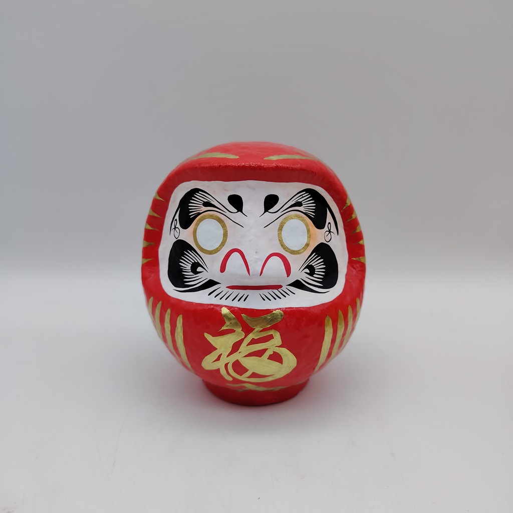 La bambola ha un volto stilizzato da uomo con barba e baffi, ma gli occhi sono dei cerchi di colore bianco. Usando dell’inchiostro nero, bisogna disegnare un solo occhio esprimendo un desiderio e tenendo il Daruma in casa o sul luogo di lavoro. Se il desiderio dovesse avverarsi, verrà disegnato anche il secondo occhio.