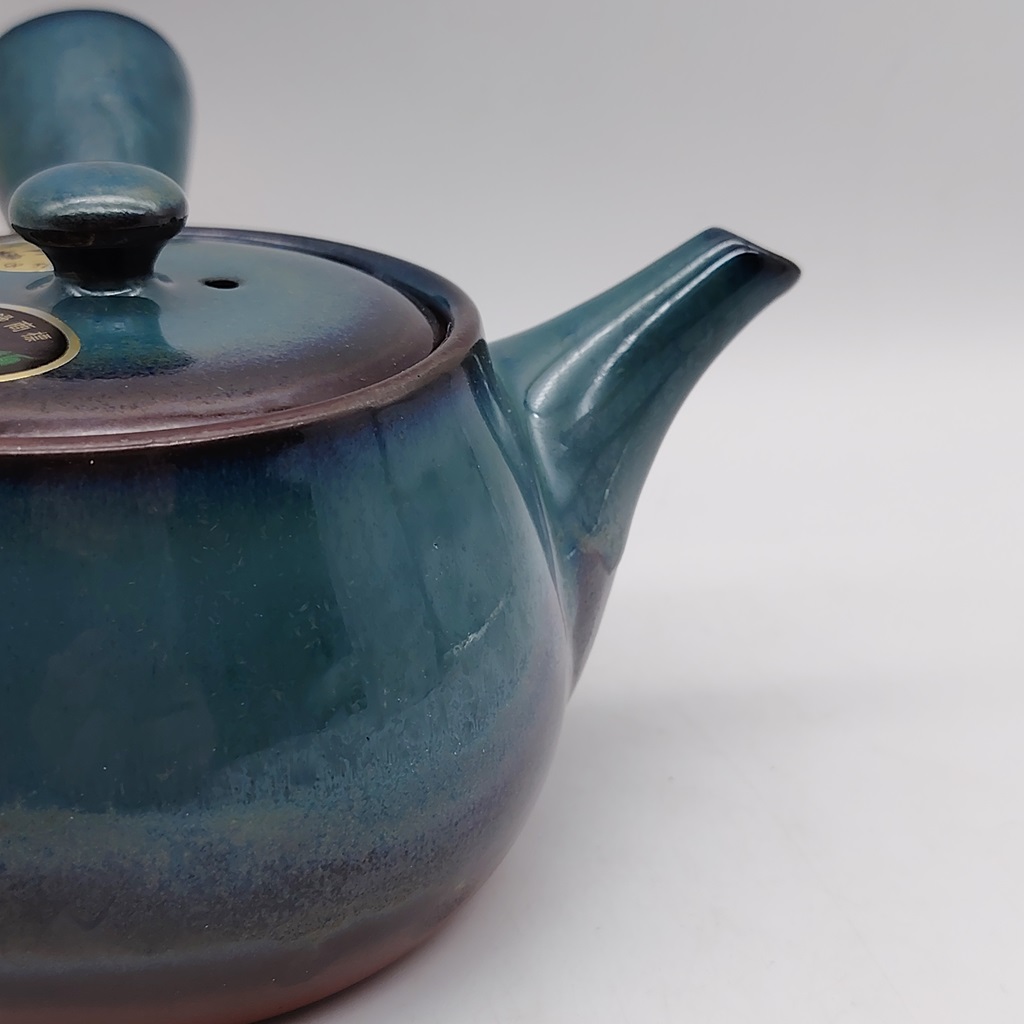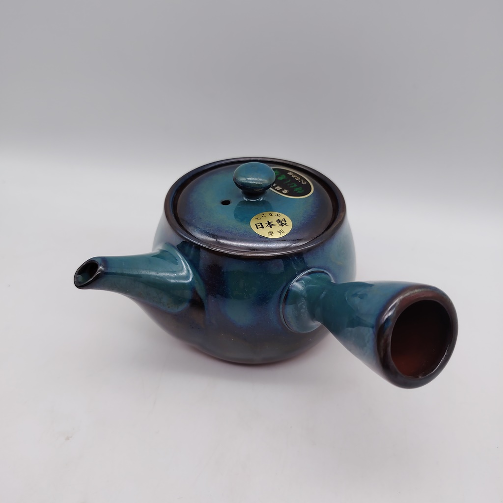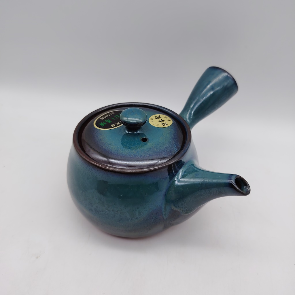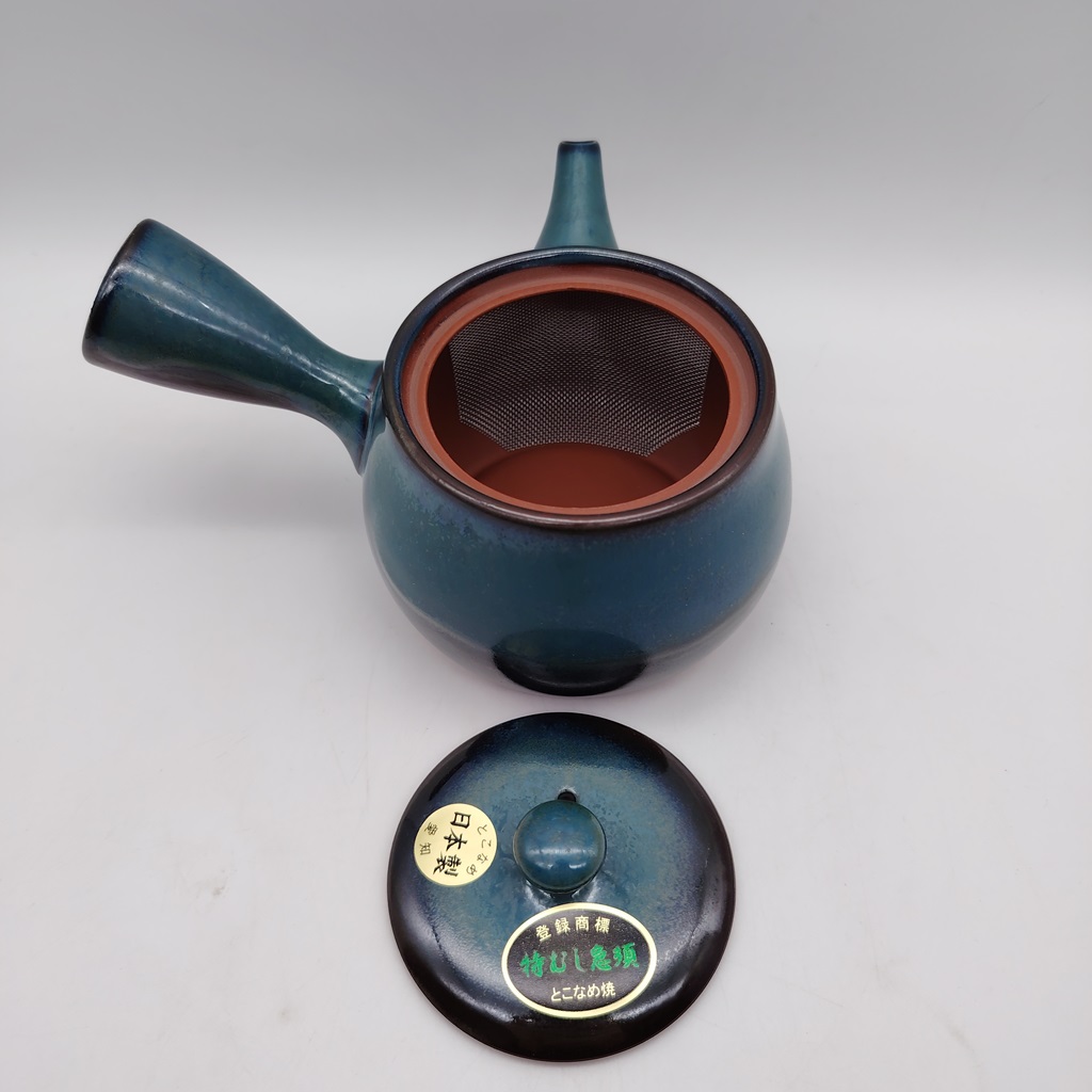 Questa kyusu è realizzata in ceramica naturale/rossa e smaltata con uno splendido colore verde-blu. Il suo design è stato creato appositamente per renderla facile da utilizzare e da pulire e durevole nel tempo.