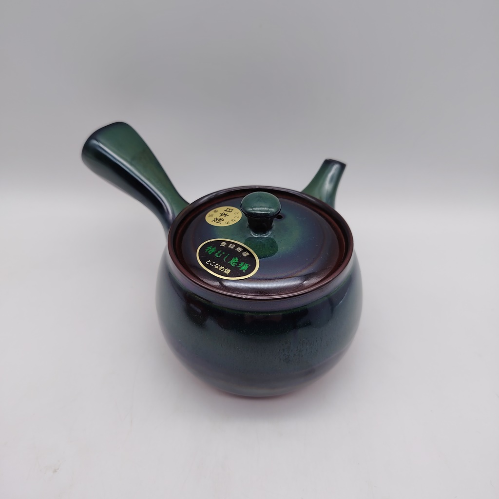 Splendida teiera giapponese tradizionale, realizzata completamente a mano a Tokoname (pref. Aichi). Tokoname è uno di sei antichi forni ceramici del Giappone. L’argilla di Tokoname è di altissima qualità ed è rinomata in tutto il mondo per la sua ricchezza in minerali che, a contatto con il tè, ne esaltano e migliorano il sapore.
