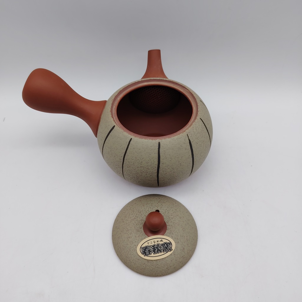 Splendida teiera giapponese tradizionale, realizzata completamente a mano a Tokoname (pref. Aichi) dall’atelier del maestro Shunju. Tokoname è uno di sei antichi forni ceramici del Giappone. L’argilla di Tokoname è di altissima qualità ed è rinomata in tutto il mondo per la sua ricchezza in minerali che, a contatto con il tè, ne esaltano e migliorano il sapore.