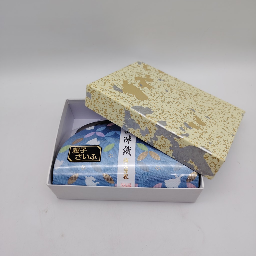 Portamonete in tessuto broccato “Kyoto Nishijin-ori”, leggero, brillante e resistente, dal design tradizionale. Foderato in velluto all’interno, con doppia chiusura a clic-clac. Prodotto dalla storica azienda Kamiya di Kyoto, ogni loro creazione è un pezzo unico di artigianato locale!