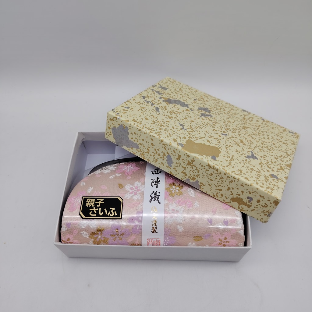 Portamonete in tessuto broccato “Kyoto Nishijin-ori”, leggero, brillante e resistente, dal design tradizionale. Foderato in velluto all’interno, con doppia chiusura a clic-clac. Prodotto dalla storica azienda Kamiya di Kyoto, ogni loro creazione è un pezzo unico di artigianato locale!
